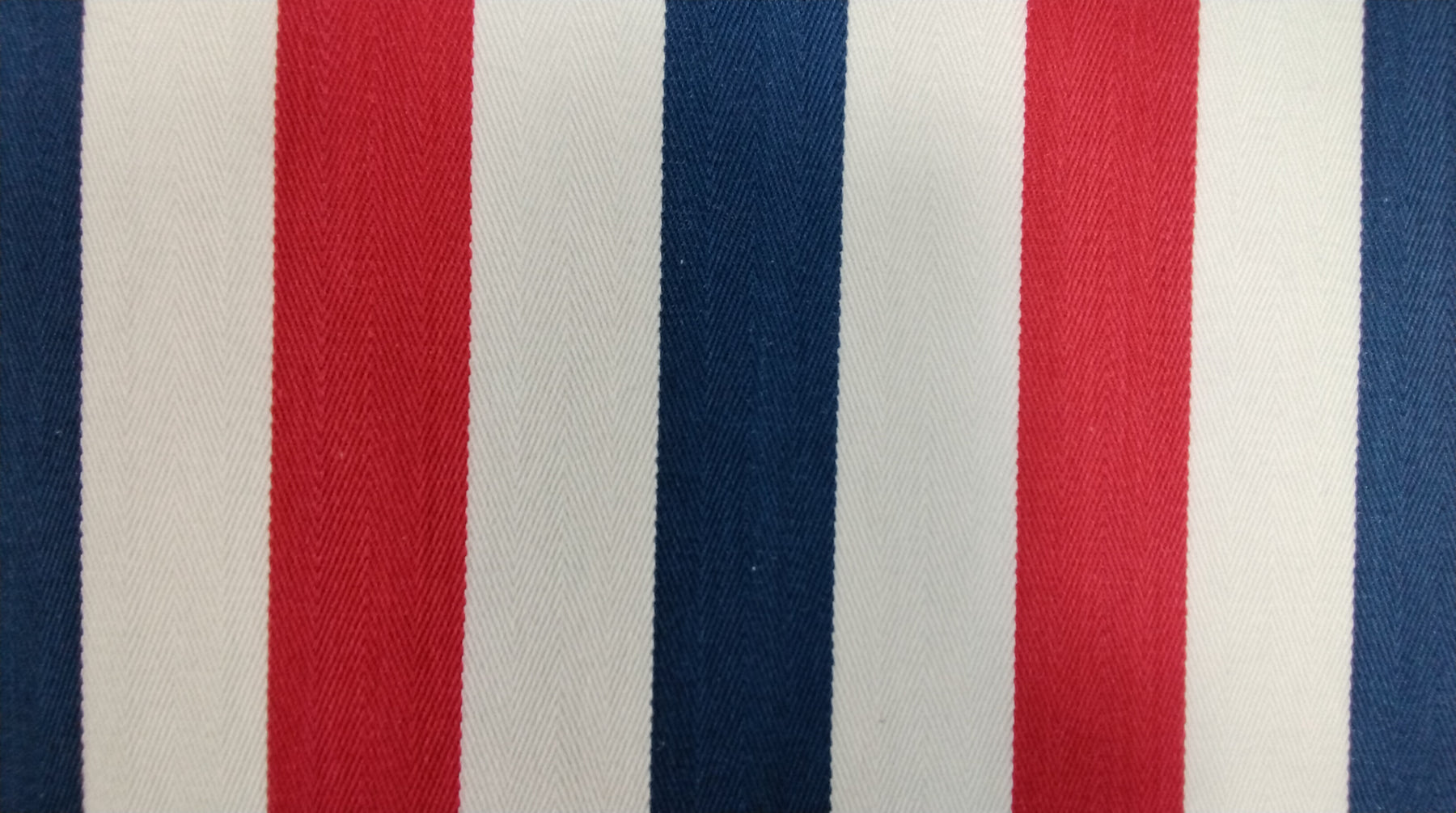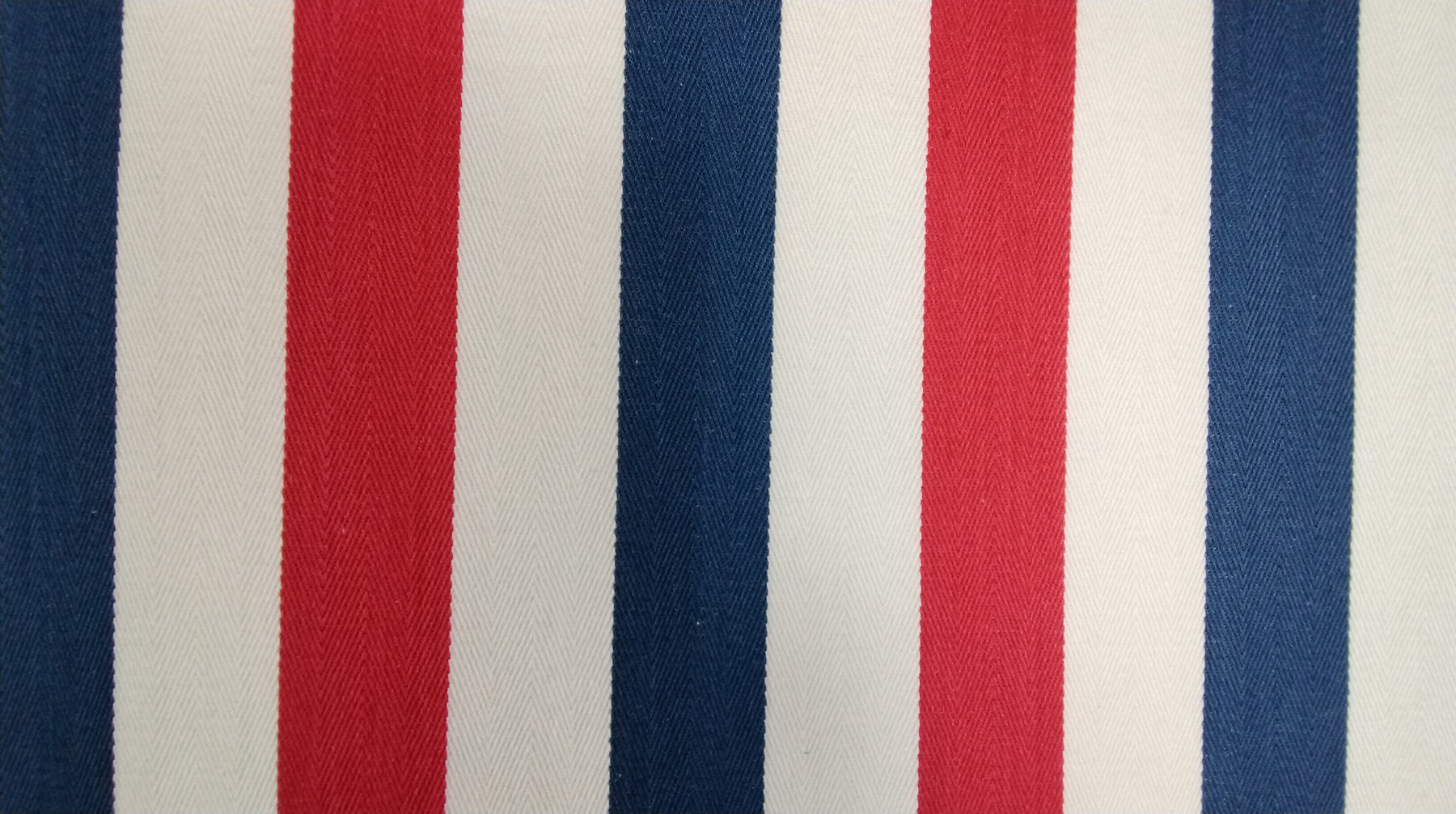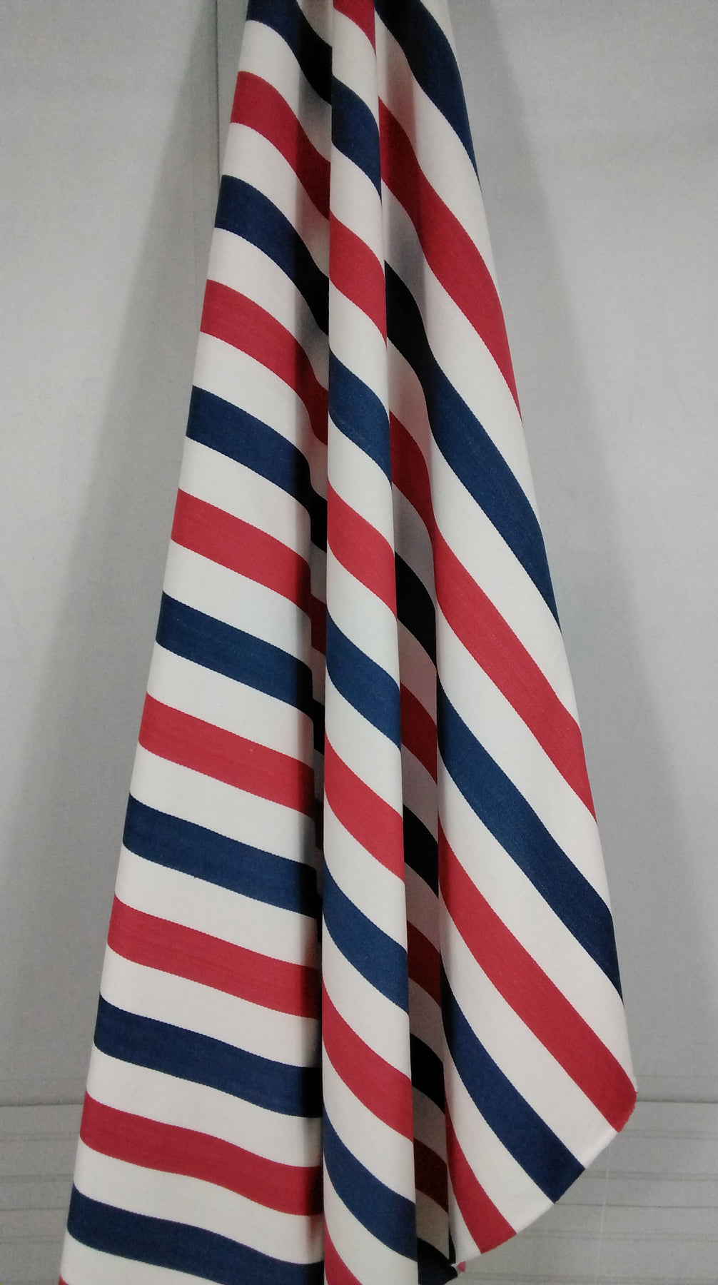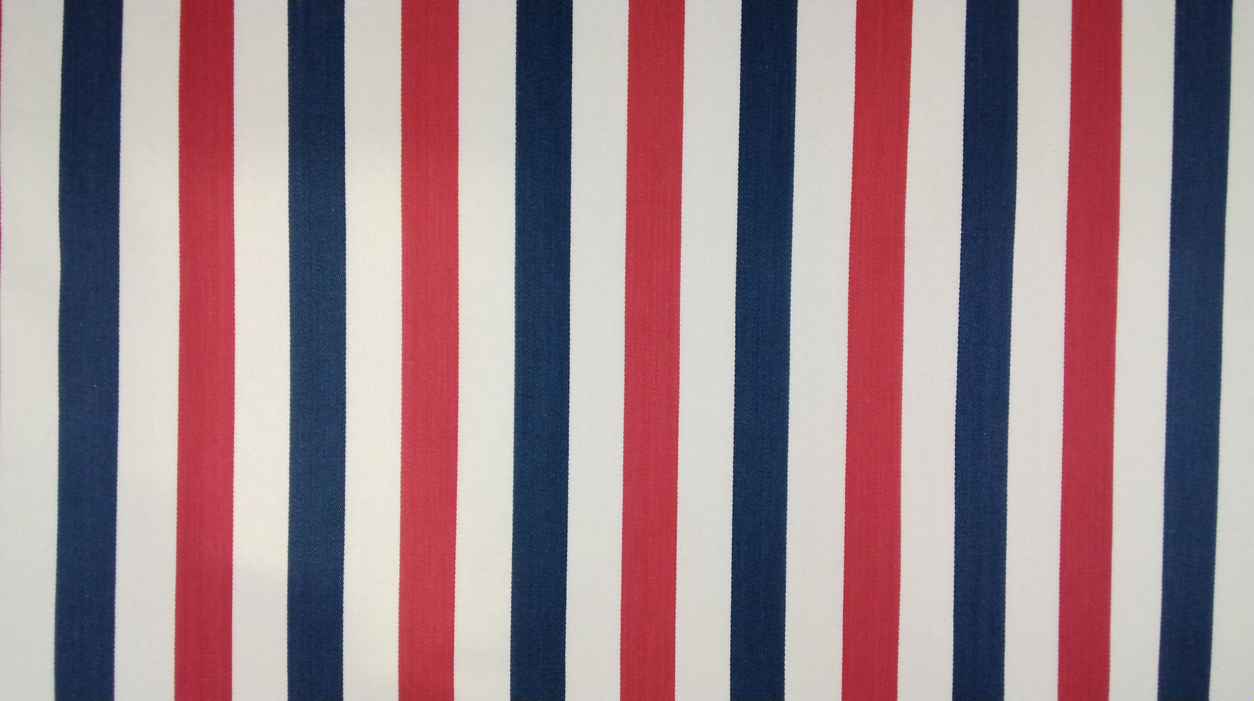 A bold striped fabric with a nautical look by ILIV. 100% cotton, 137cm wide, pattern repeat 15cm. Suitable for curtains, blinds, cushions and light upholstery. Available by the metre. Samples can be ordered through Fabric Samples on the home page. Samples are recommended as fabric orders are non returnable.