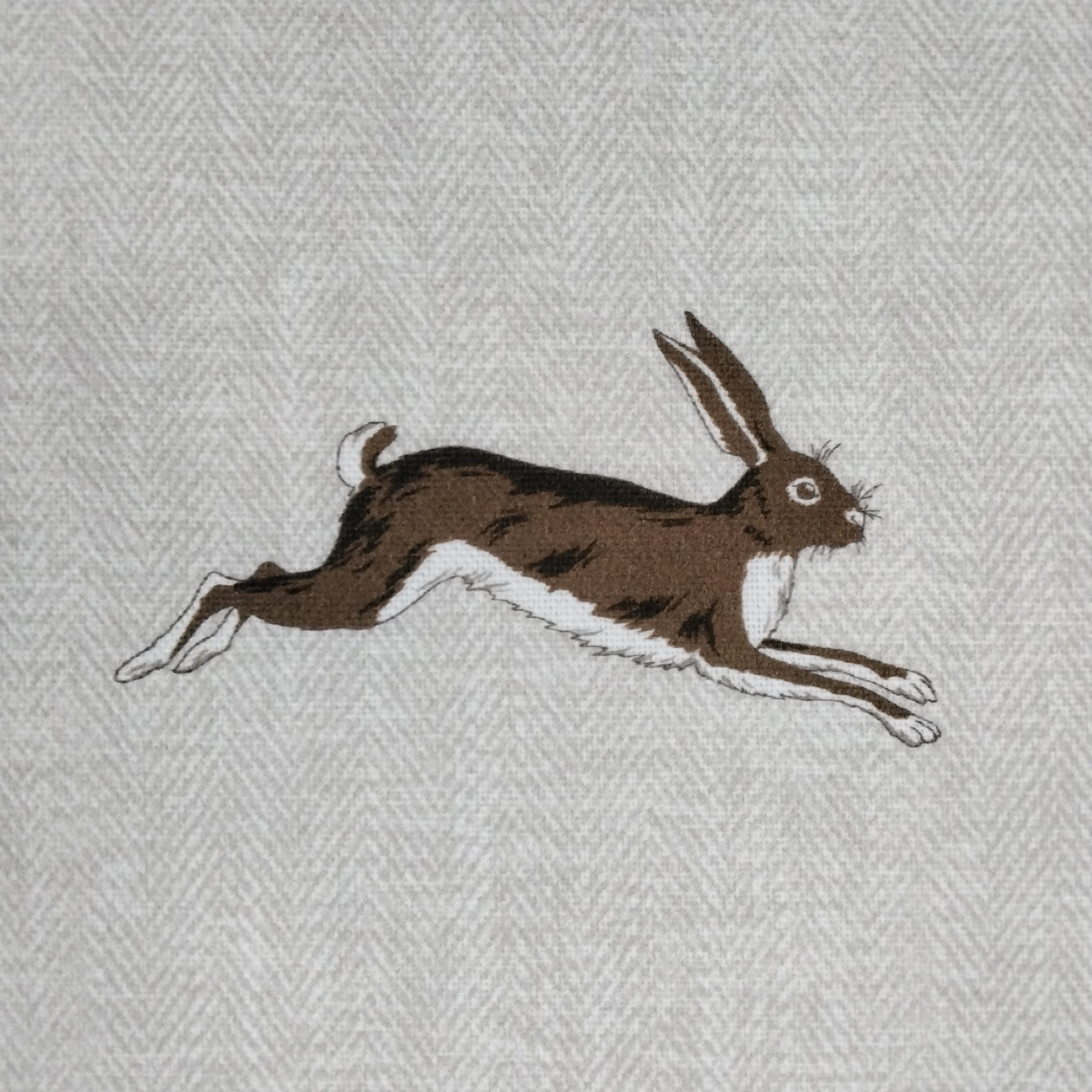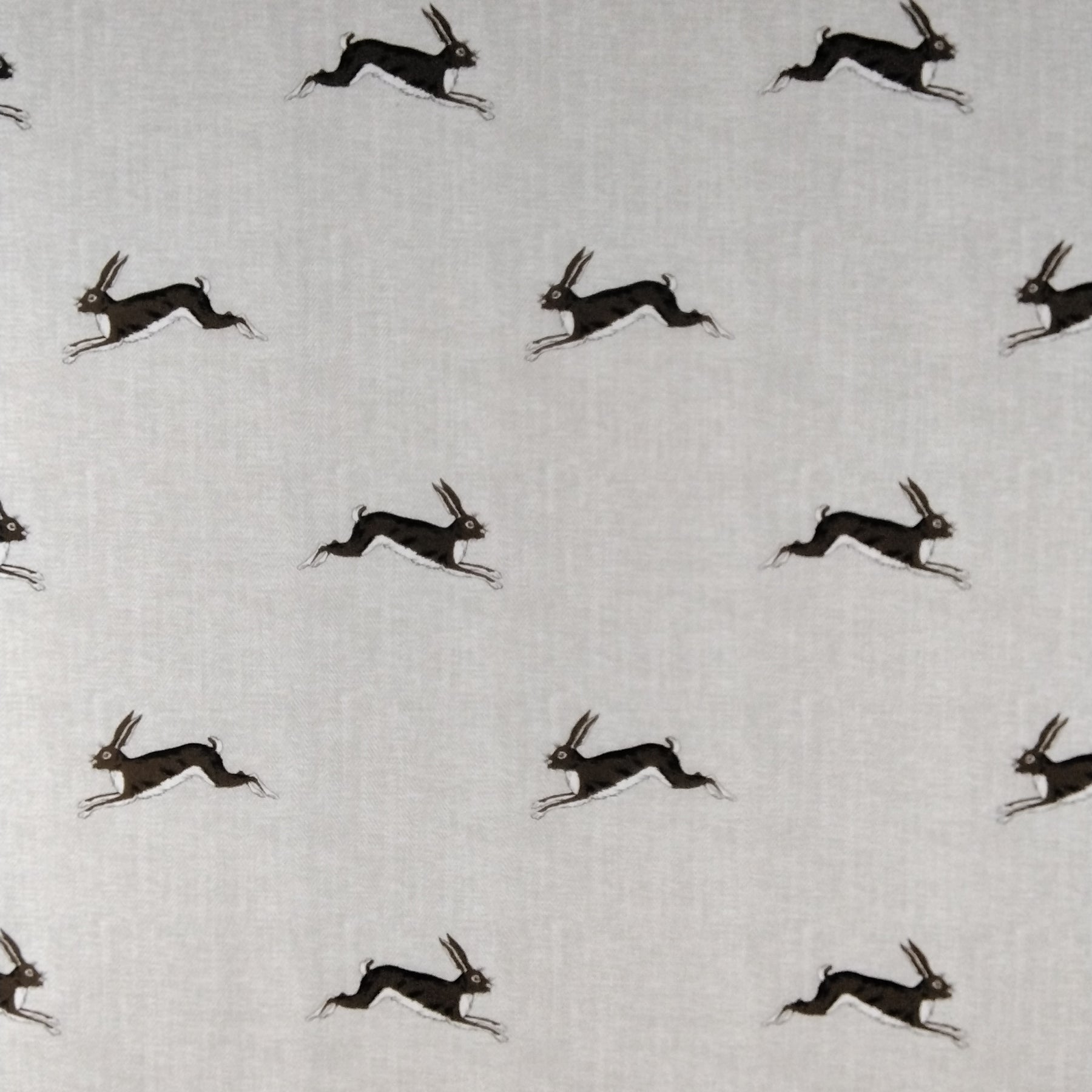 This leaping Hare fabric called Alice, is one from our collection of Emily Bond fabrics. 100% cotton, 138cm wide, vertical repeat 23cm and horizontal repeat 23cm. Suitable for softfurnishings, curtains and blinds.