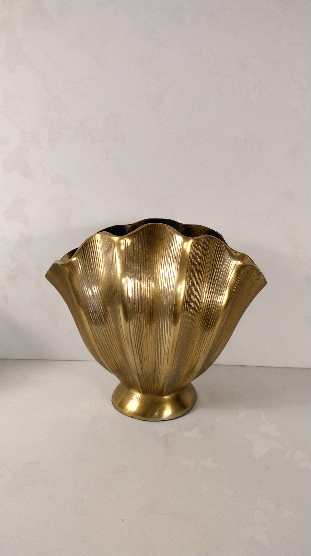 Opulent gold effect shell vase. Suitable for fresh flowers or purely as a decorative piece in many interiors.