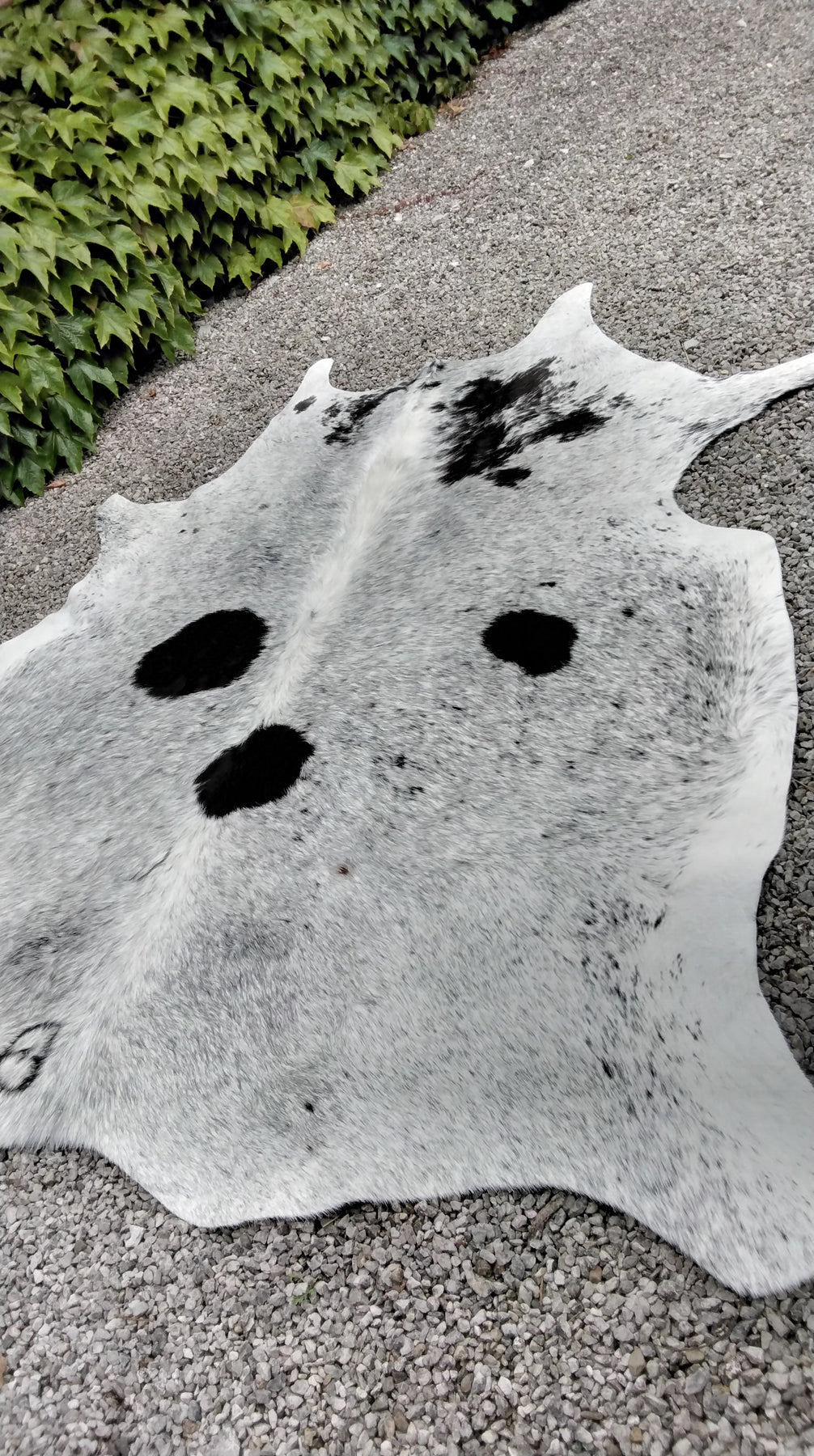 100% leather cowhide from Spain. Use as a rug or alternatively a throw over the back of a large sofa or bed, makes an alternative wallhanging too.